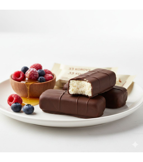 Experience the authentic taste of Europe with 33 KOROVY Curd Cheese Bars. These protein-rich snacks feature a smooth, creamy vanilla curd center enveloped in a crisp, dark chocolate-style coating. A perfect blend of sweetness and nutrition, this 5-pack is a convenient, healthy dessert for busy families in Hong Kong looking for an authentic taste of home.